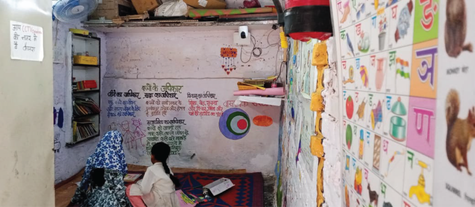 Eager to resume the lessons, group discussions, and activities that took place in their previous center, girls and boys thronged their new center with renewed enthusiasm. However, one step in and the whitewashed brick walls of the new space stood out as a blank canvas to this motley group of spirited adolescents.